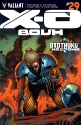 Перевод - BruChus Оформление - Dementer "Х-О Воин воспользовался последней уловкой и, наконец, сравнял шансы. Впереди последняя схватка... Смогут ли объединенные силы Х-О Воина, Бладшота, Единства и других выдающихся героев Valiant'а спасти наш мир от Охотников на Броню?" |