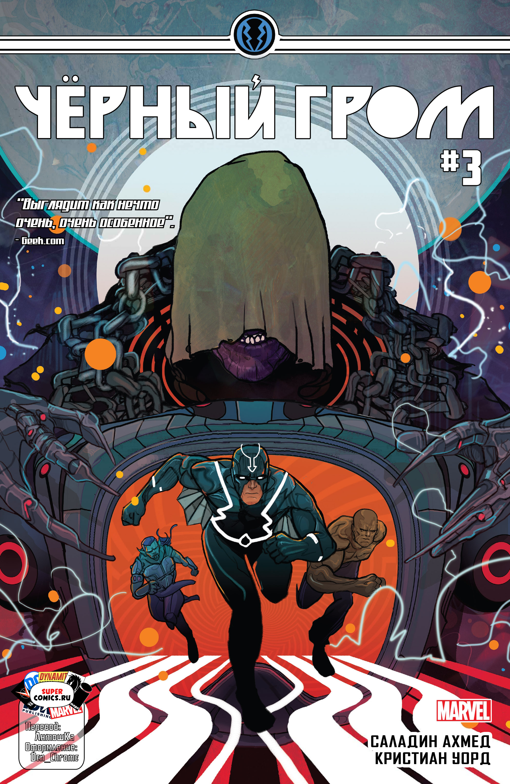Оформление - Den_Chrome, АнтошКа "После событий "Нелюдей Прайм" Чёрный Гром неожиданно просыпается в тёмном, смрадном месте. В цепях и наморднике. Как Король Нелюдей стал пленником? И сможет ли он выбраться?" |